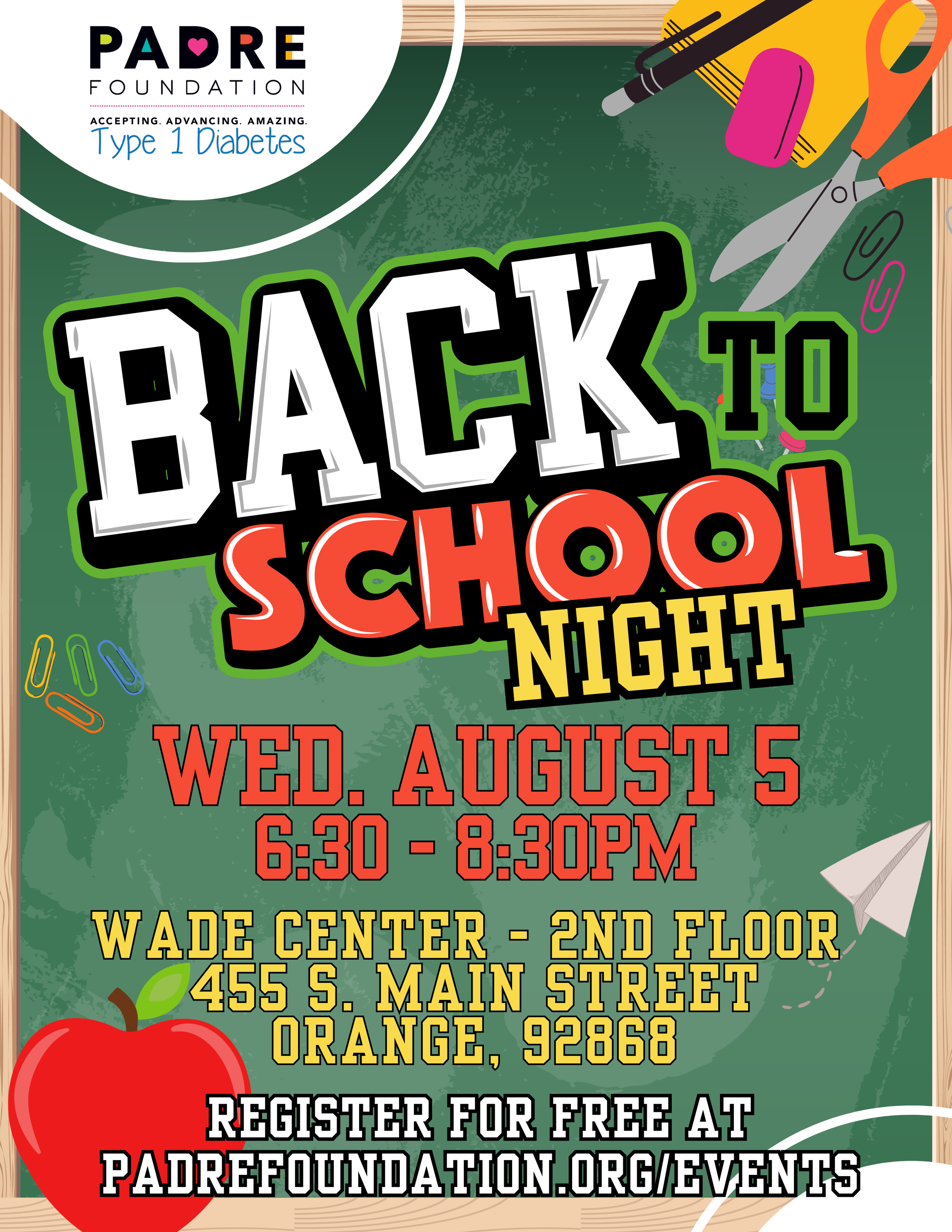 Join us for an all-new, informative Back to School Night! The American Diabetes Association will present their Safe at School program and we'll cover doctor’s orders, 504 plans, school supply kits, testing accommodations, and how to prepare for a successful school year, plus much more!